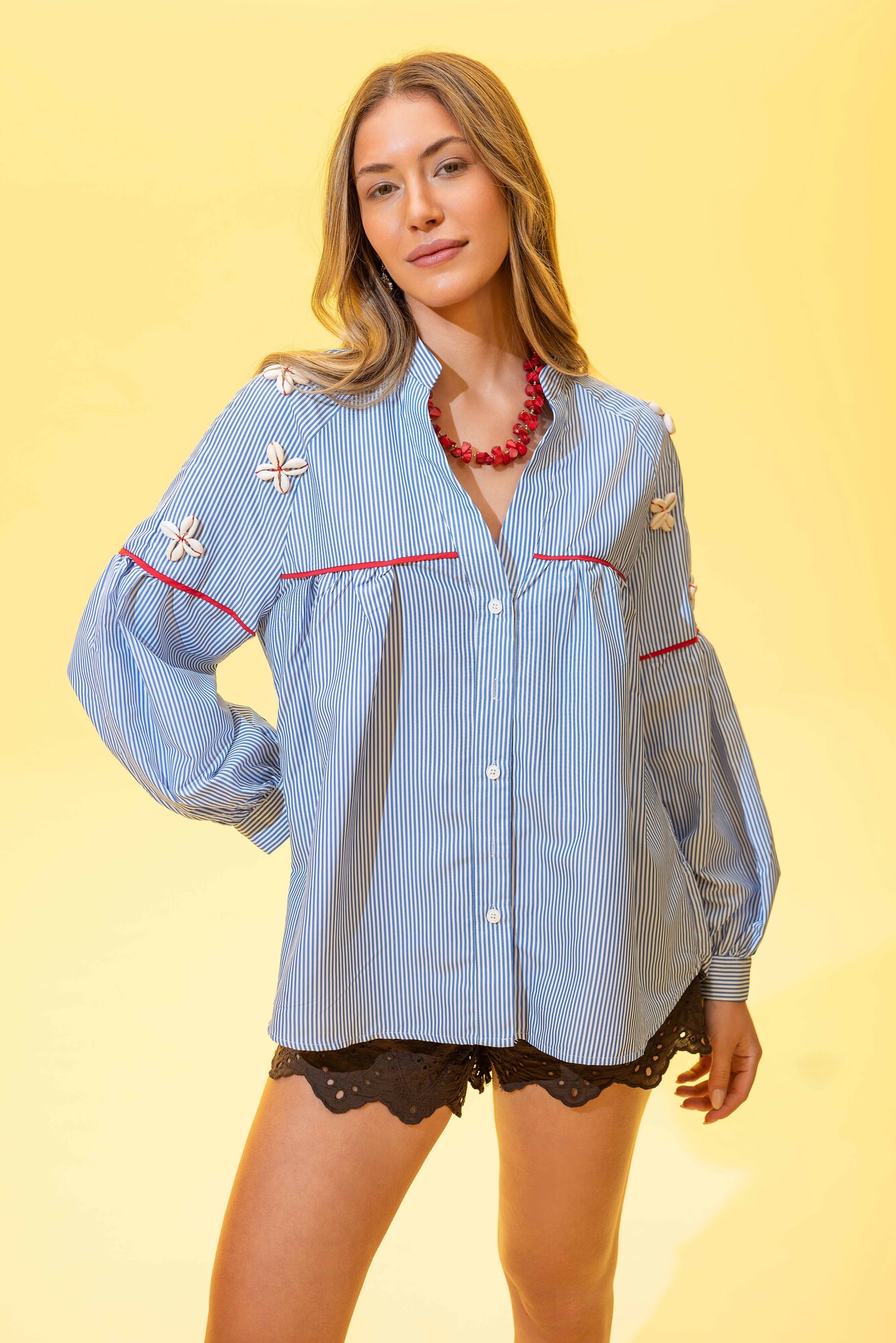 La camisa que reinventa las rayas, clasica en su base, pero con detalles únicos.