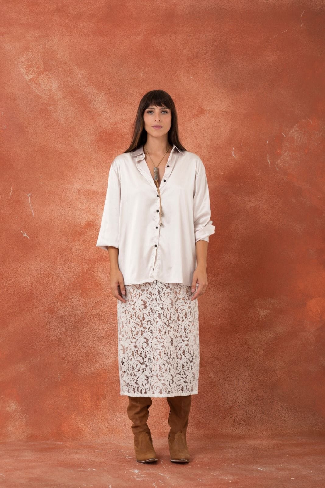 FALDA DE ENCAJE CON DETALLES EN DORADO Y PLATEADO