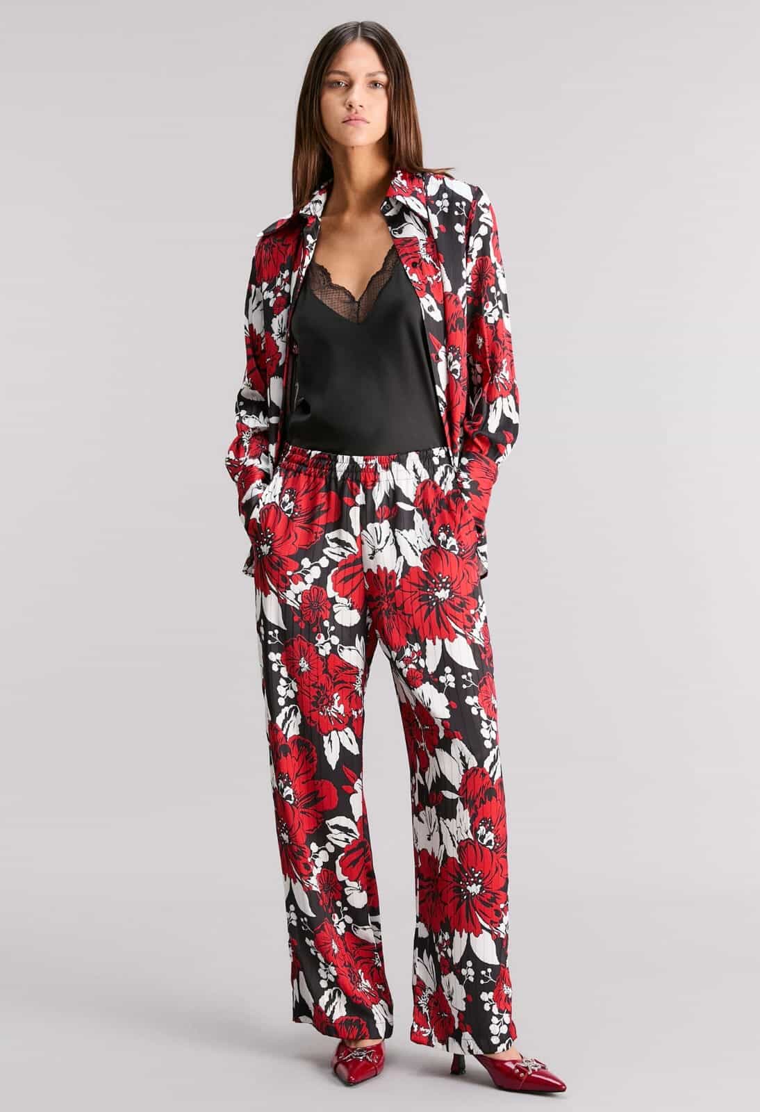 El pantalón pijamero Talking About es de calce relajado, cintura elastizada y bolsillos ocultos. Está confeccionada en satén calado estampado con un diseño exclusivo de nuestra colección. Esta prenda hace juego con la Camisa Talking About. Valentina está usando en la prenda superior un talle S, y en la prenda inferior un talle S/26. Sus medidas son: Altura 1.74 m. Busto 80 cm. Cintura 62cm. Cadera 89cm.