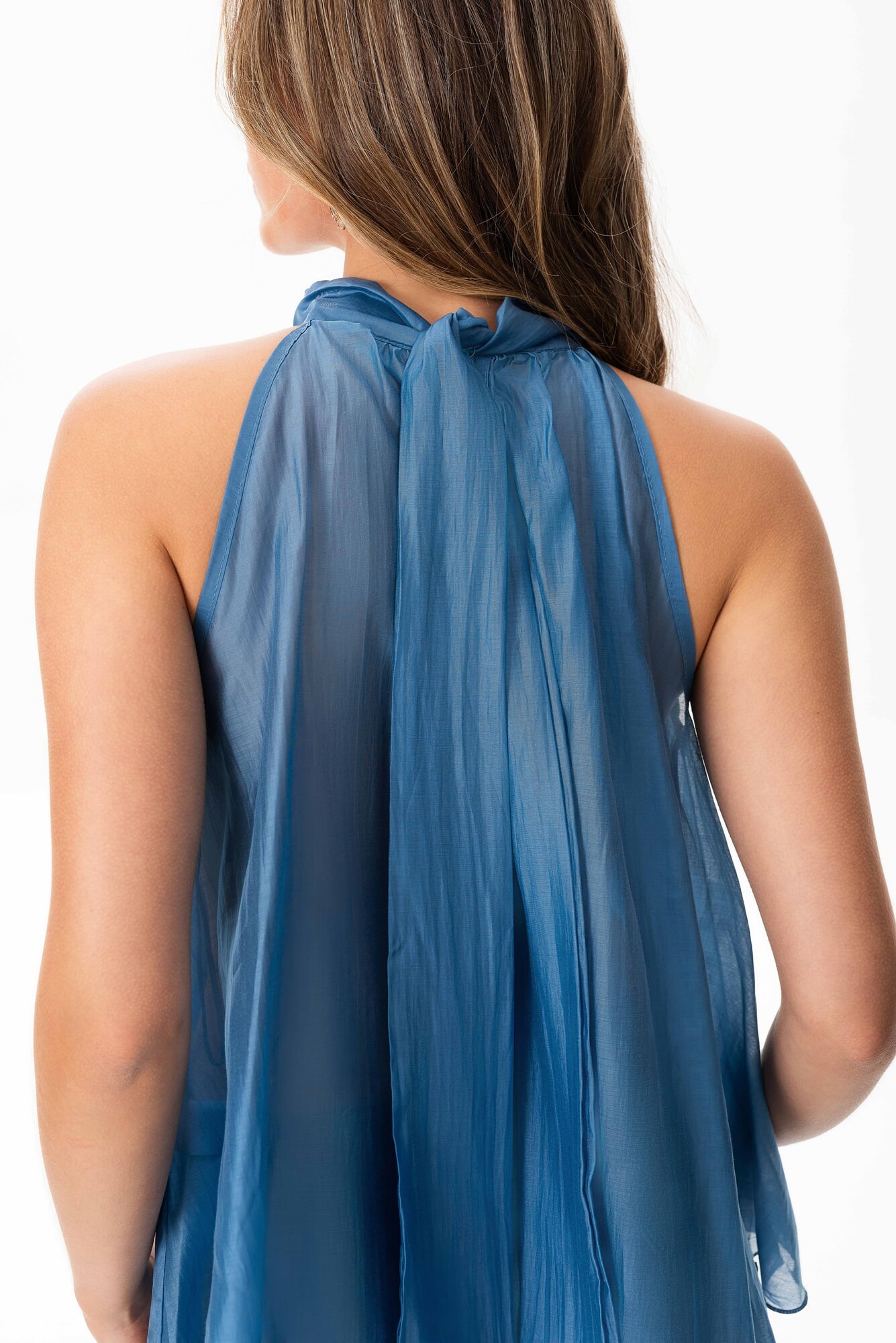 Top confeccionado en gasa liviana con delicado juego de volados en la parte delantera, y transparencia del mismo color atrás.